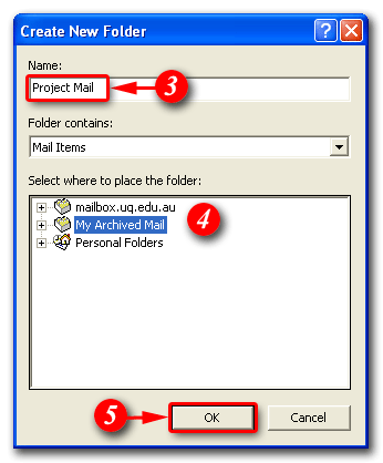 10)Enter a 'Name' for your folder (N.B. this name will appear in the folders list on the left of the Outlook window)